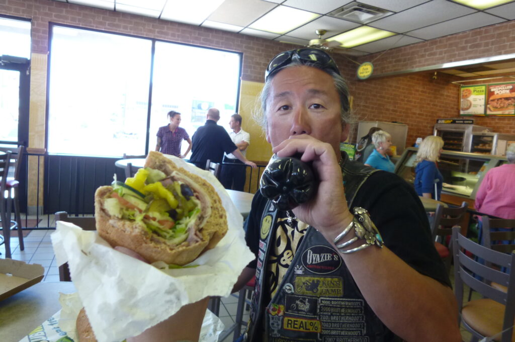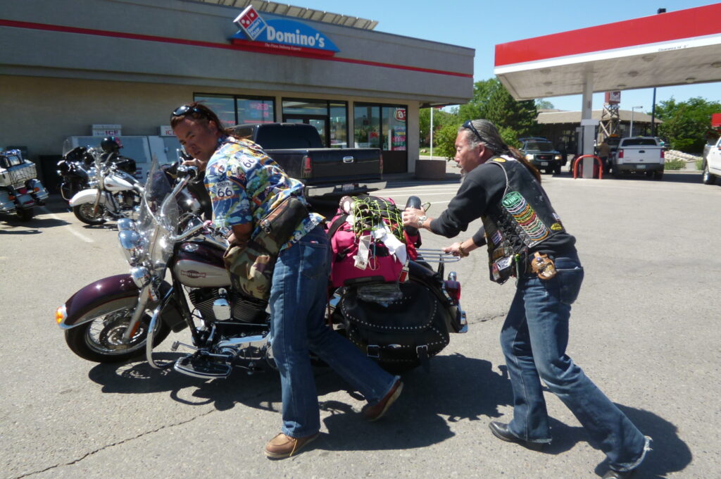 アメリカのスタンドは全部セルフサービスで給油レバーはとても固くて重いので この旅では2台合わせて止めて きんさんがルル号と一緒に給油してくれていたんだけど そのルル号を満タンと きんさん号半分に間違えてDieselをゴクゴク飲ませてしまった。