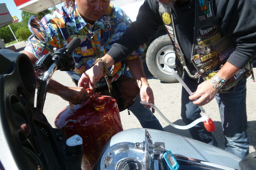 突然現れた地元の救世主はスティファンというハーレー乗りで、例年ならスタージスに行ってるんだけど今年は、仕事で行くことができず。今日はディーゼルガソリンを買いに来てたのだそうな。
