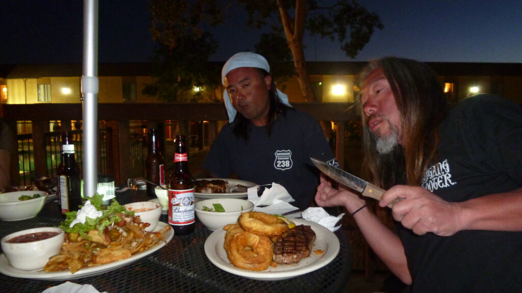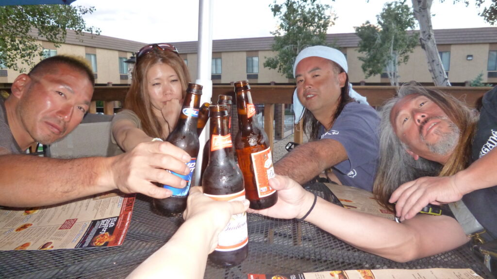そしてロッキー山脈を越えた。山林の山道が続くルートで、アクセルを開けると少しバスバス パンパンとバックファイヤーしたりしたけど(残ってるディーゼルの影響)とくに問題もなく順調に走り、ユタ州~コロラド州を駆け抜け 天下のロッキー山脈を越えてデンバーの少し先のFort Collinsのモーテルにチェックインの後、いつものように地元のおすすめレストランで乾杯したのでした。