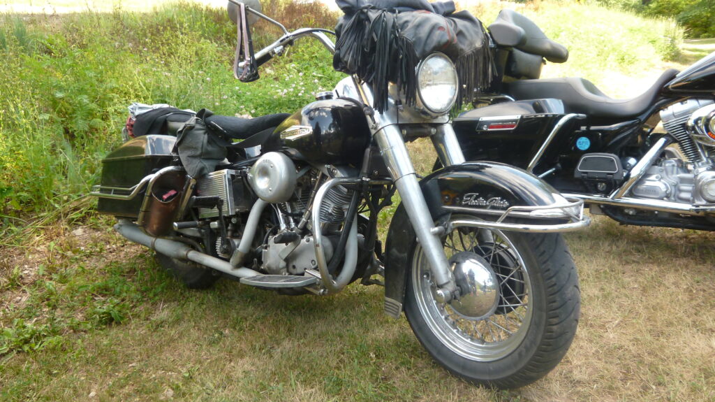 どれもクールで個性的なハーレーに乗って——アメリカ人好みのバイクがずらりと並ぶ光景は、それだけで絵になります。