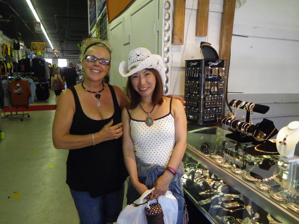 アクセサリー屋さんでターコイズのネックレスや指輪を見ていると、何とも可愛いネックレスを発見! きんさんが「記念に」とプレゼントしてくれることになりました。スタージスの記念のプレゼント。ずっと大切にしようと思います。