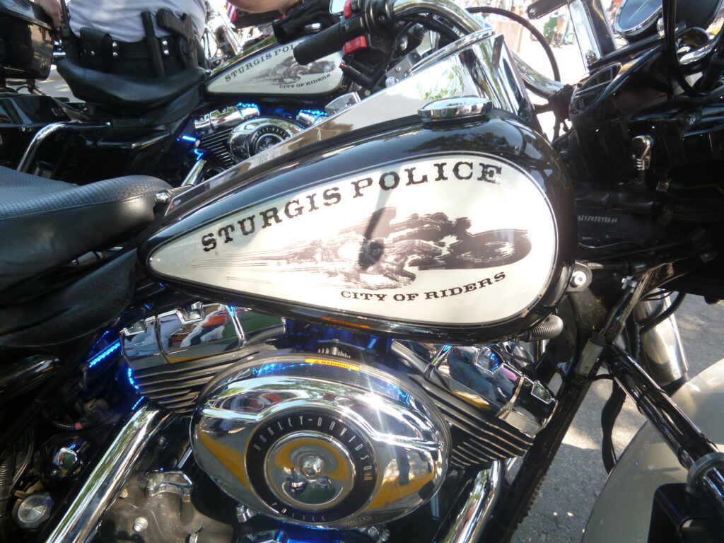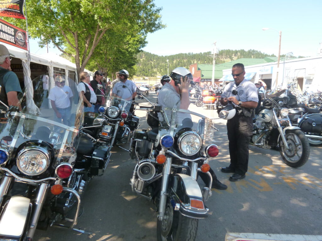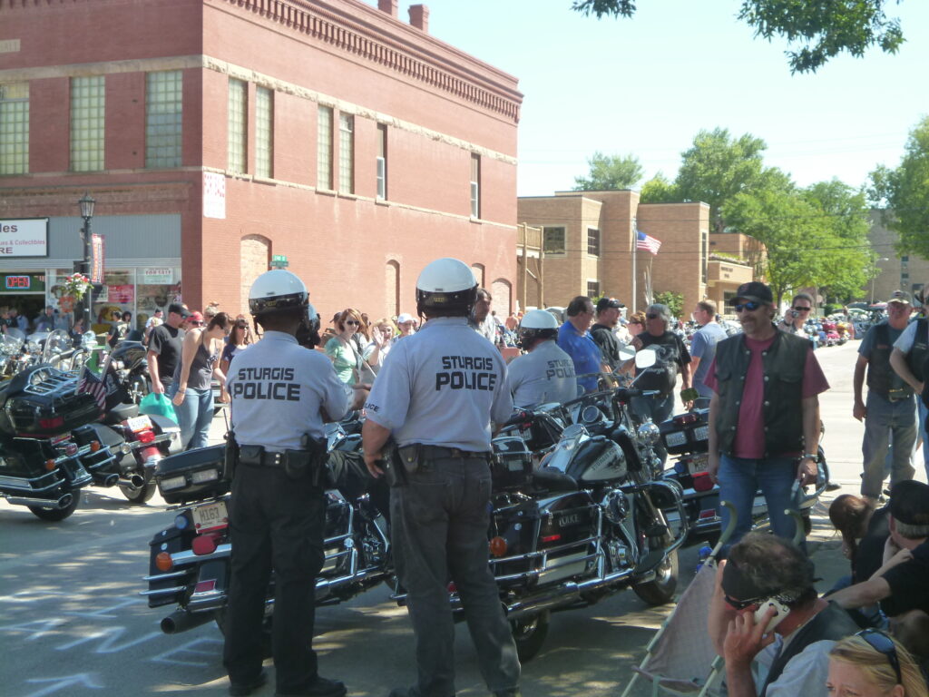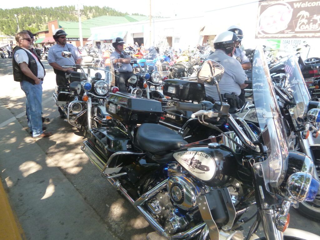 スタージスにはスタージスポリスがいます。当たり前の様子で、みんなハーレーに乗っています。