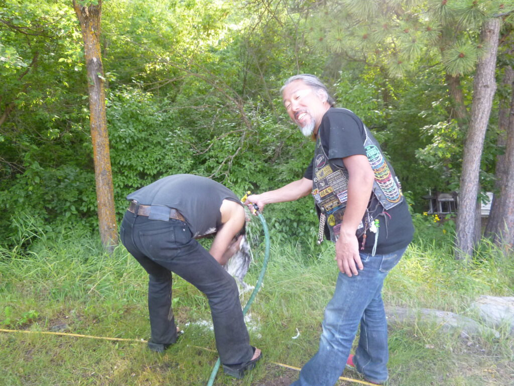 昨日に続いて2日連続で顔を出してくれるなんて——また来てくれた——それだけで、なんだかうれしくなりながら出発を見送りました。今日はみんながインディアンの聖地と呼ばれる山へ走りに行くのを見送って、ルルときんさんはのんびり過ごすことにしました。たまには休むのも旅のうち。